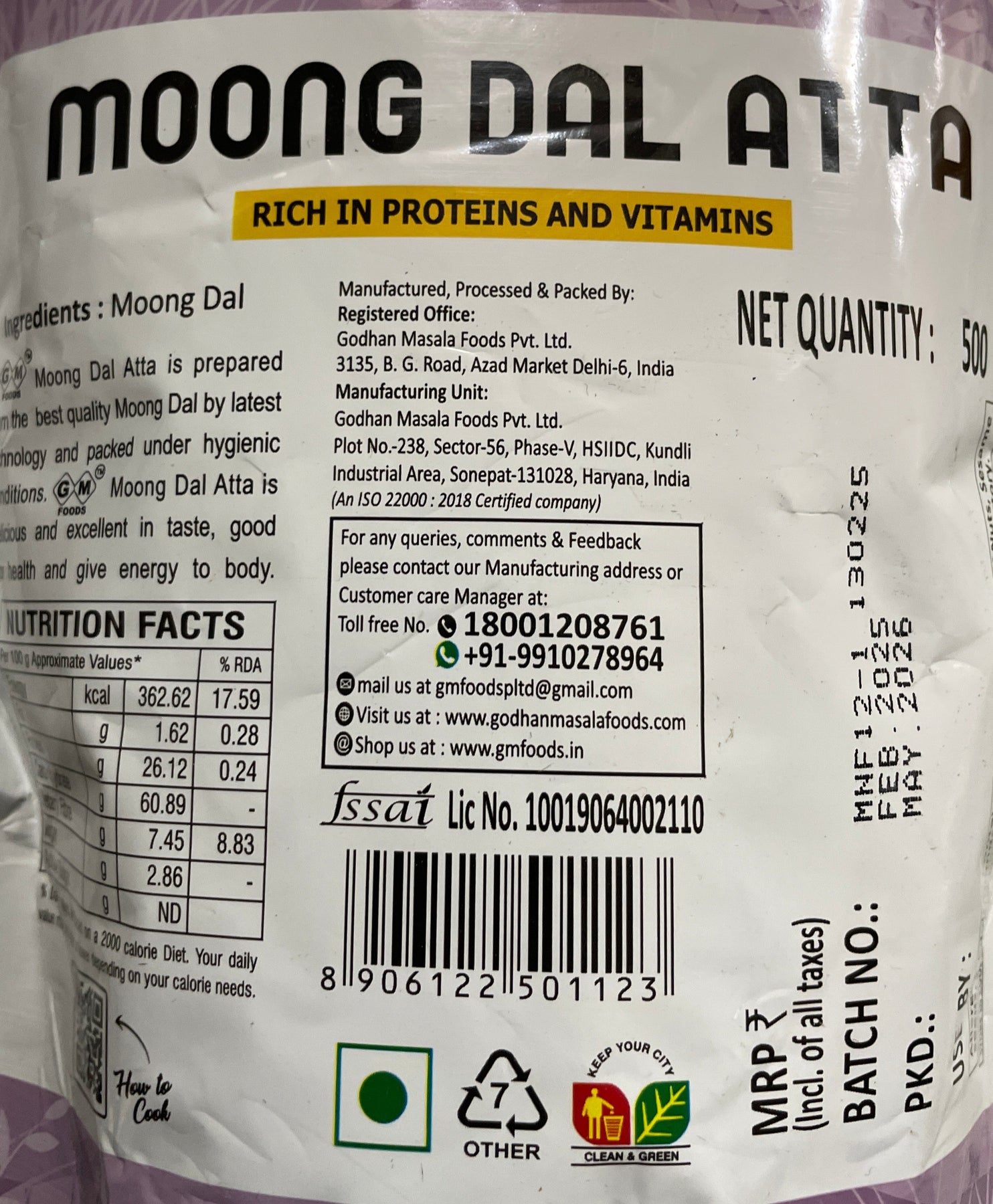 GM Foods Flour Moong Dal Atta 500g